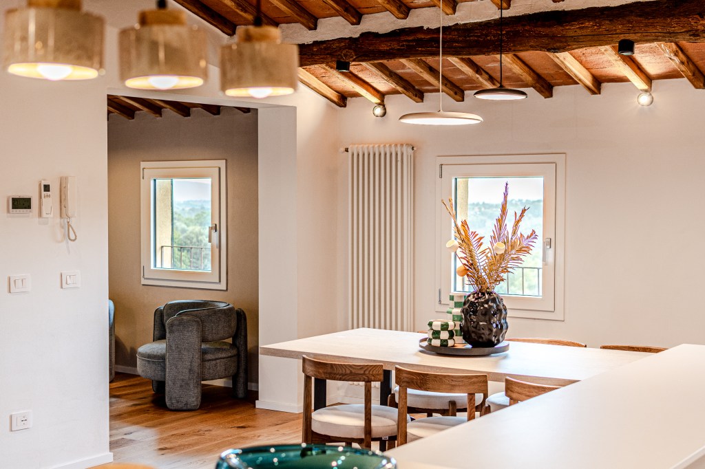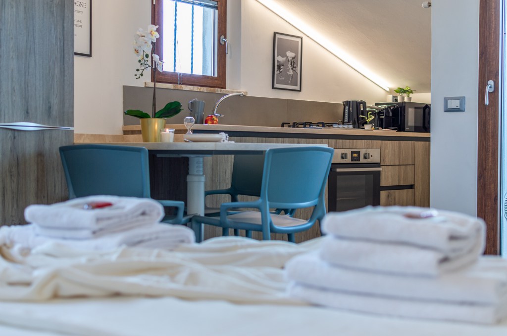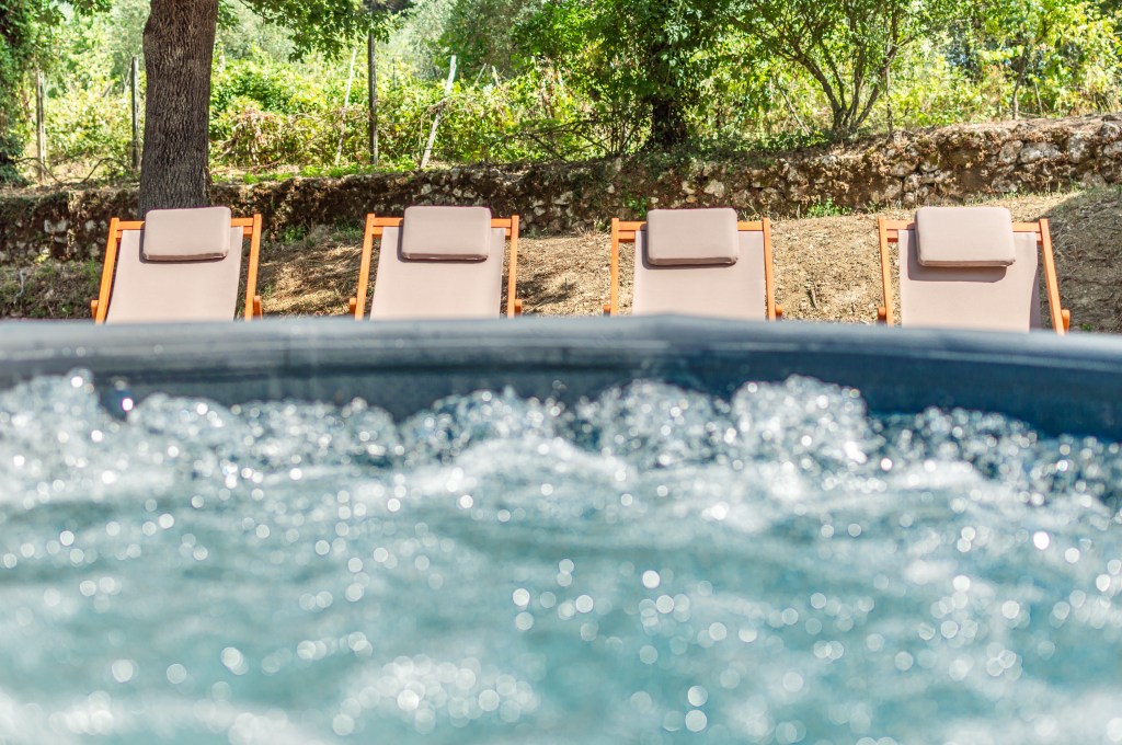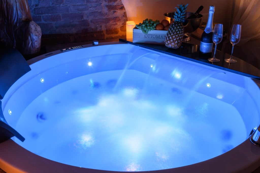 Alloggio elegante con vasca idromassaggio interna ed esterna, aria condizionata, parcheggio privato e cucina completamente attrezzata. Perfetto per un soggiorno di relax e comfort in ogni stagione.