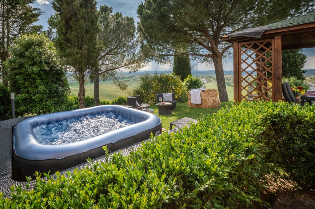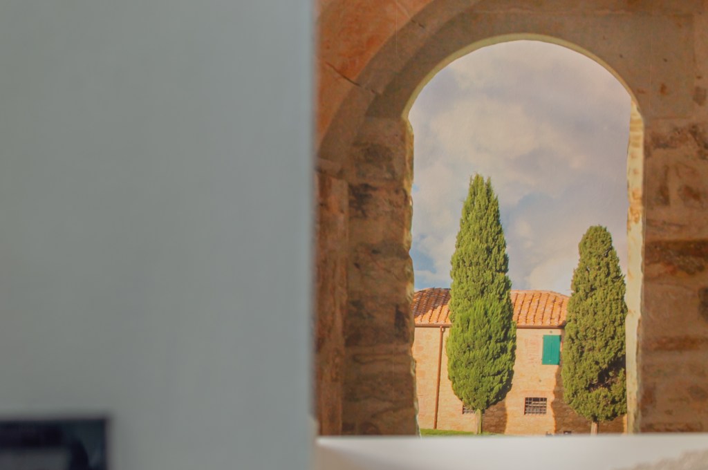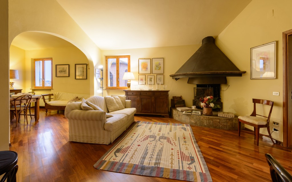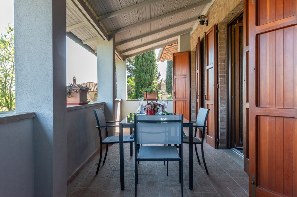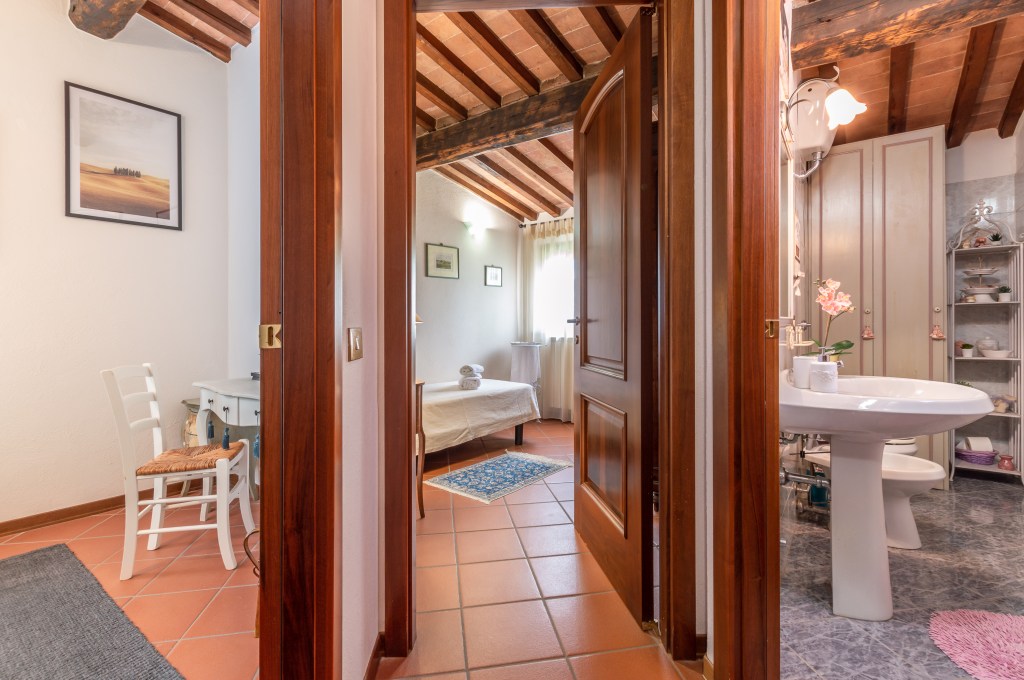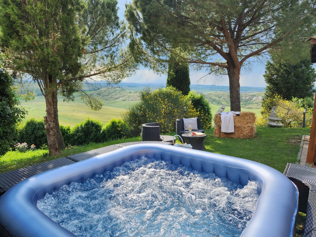 Meraviglioso casale tipico toscano affacciato sulle Crete Senesi, con piscina, giardino privato, travi a vista, 3 camere, 2 bagni, biblioteca, salotto nell’altana e aria condizionata.