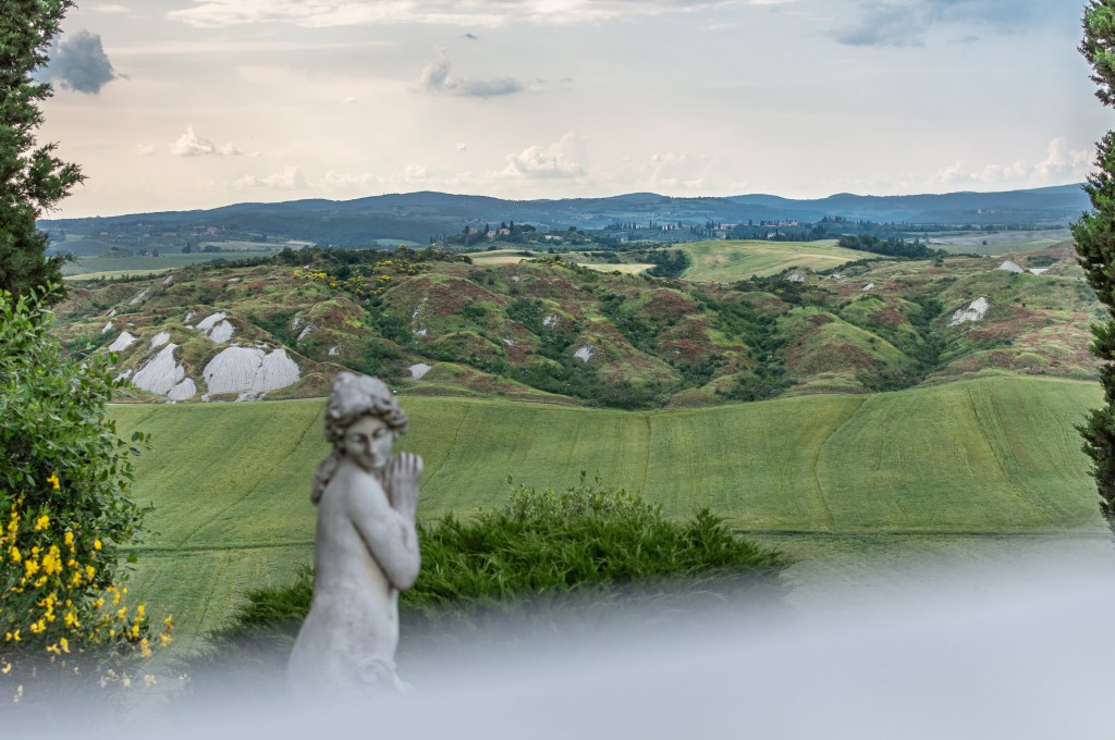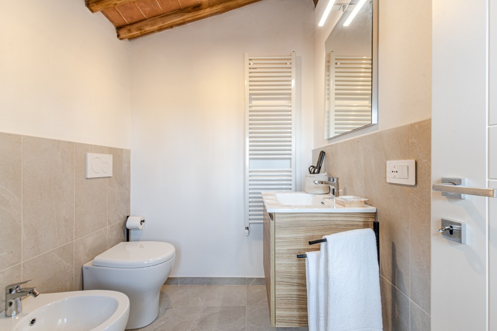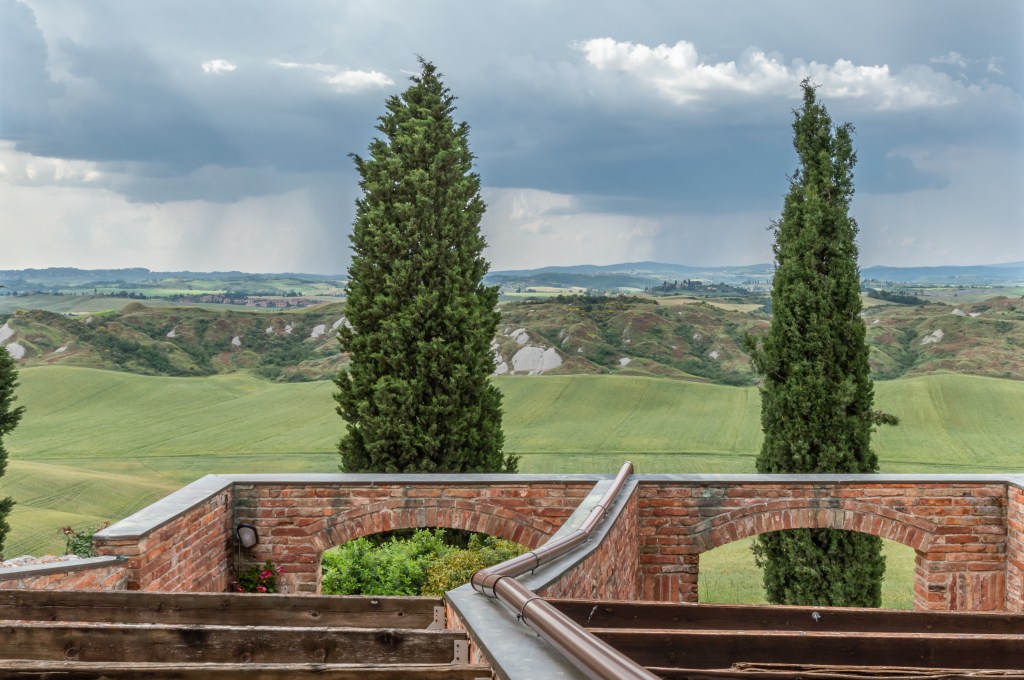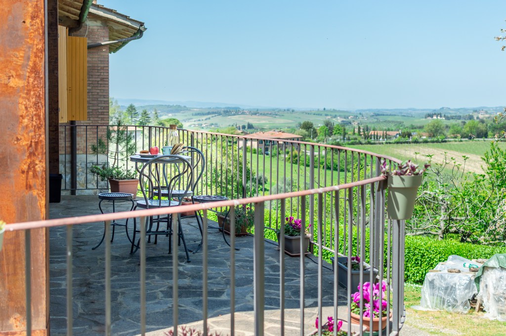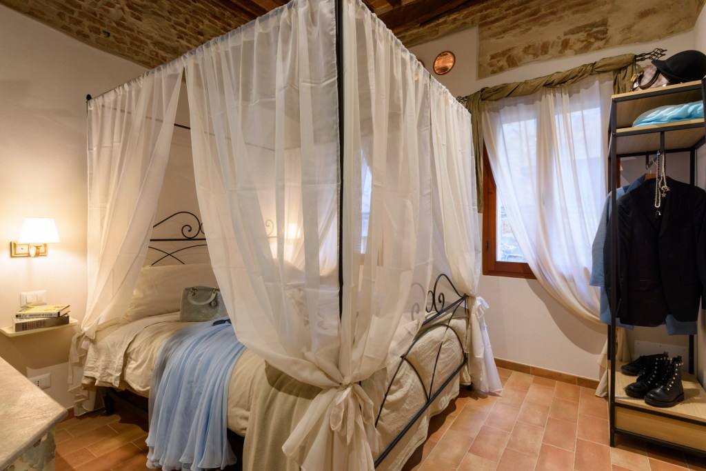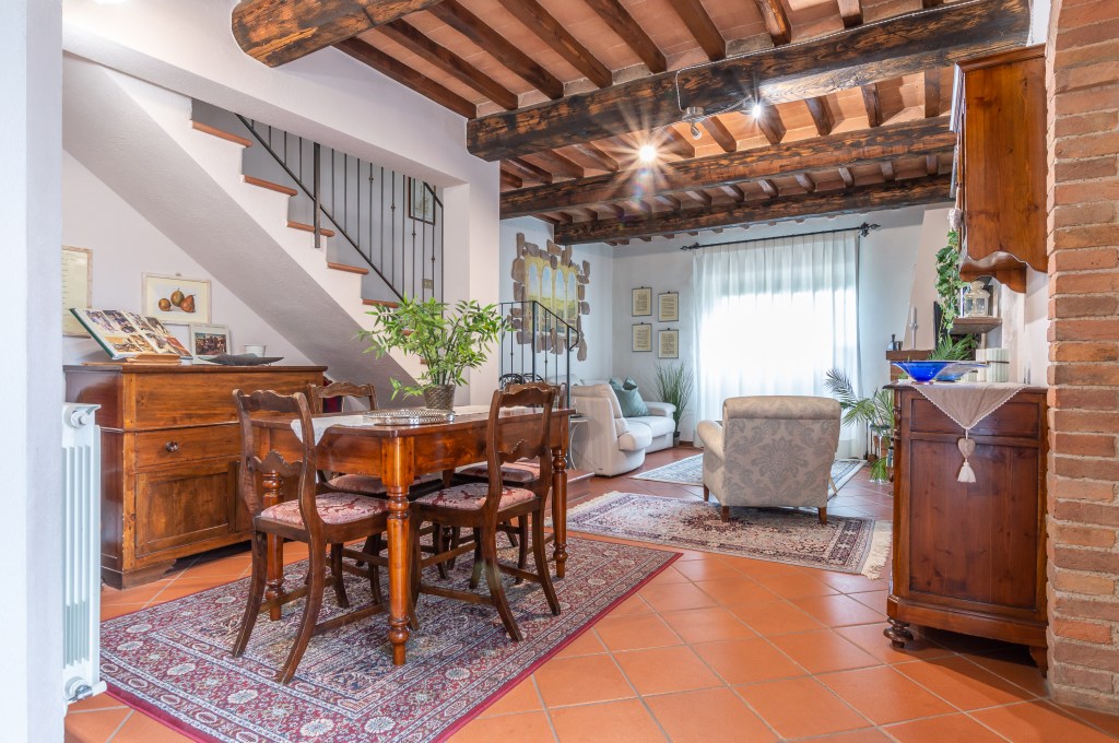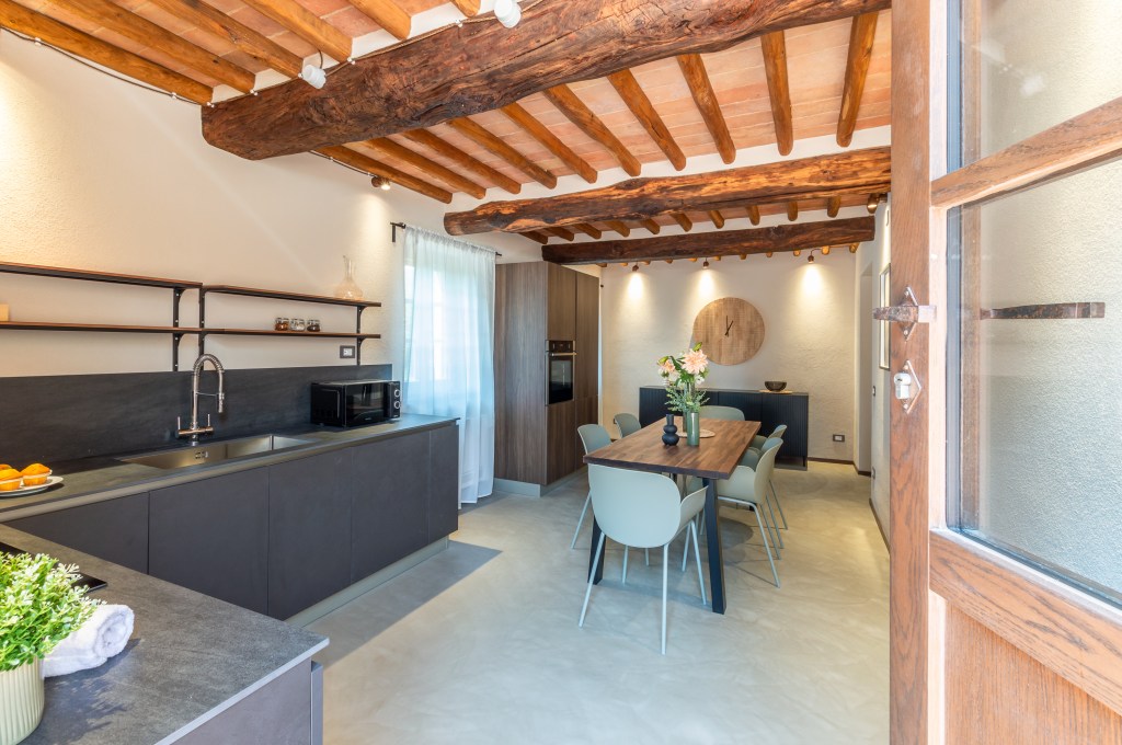 Meraviglioso casale tipico toscano affacciato sulle Crete Senesi, con piscina, giardino privato, travi a vista, 3 camere, 2 bagni, biblioteca, salotto nell’altana e aria condizionata.