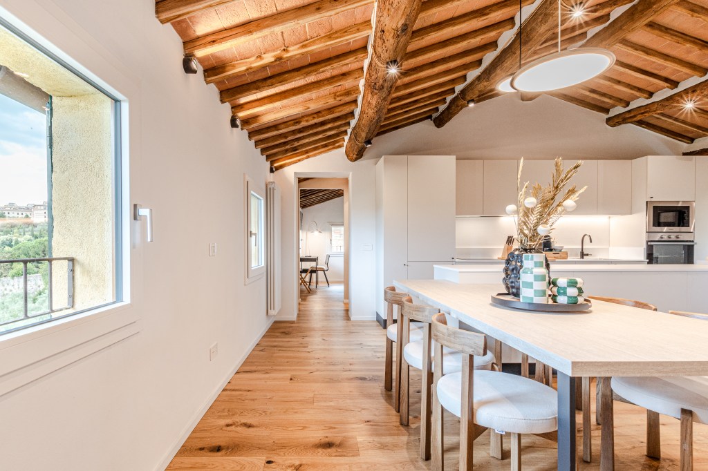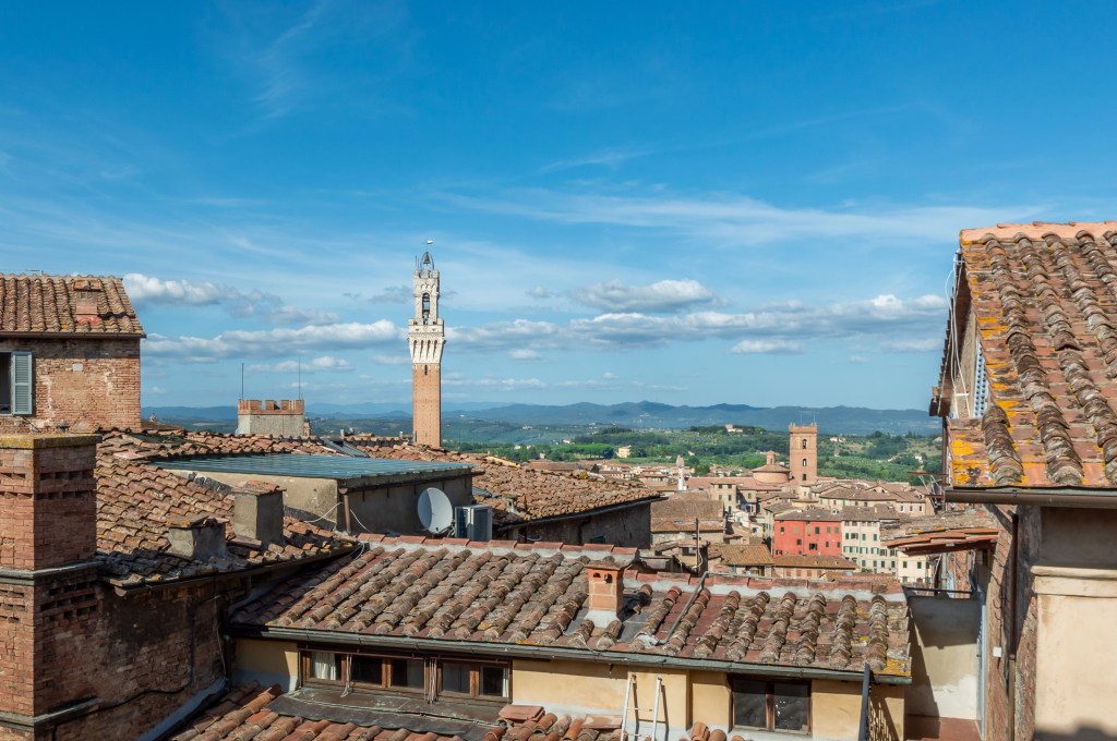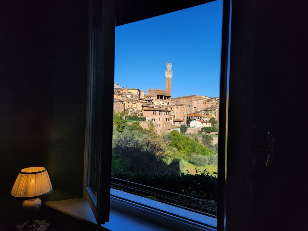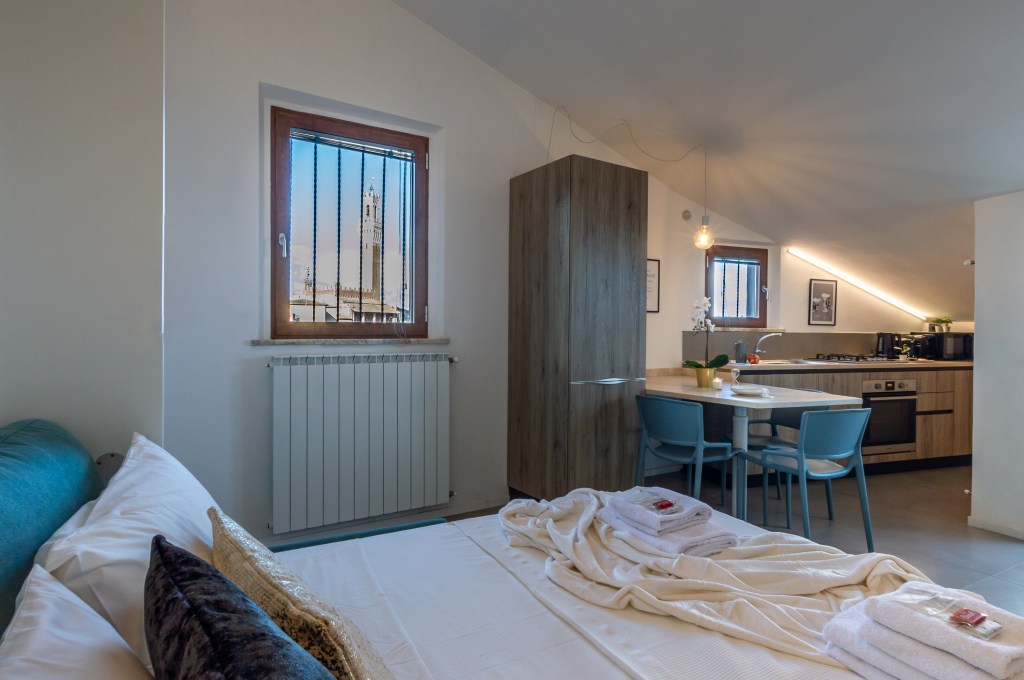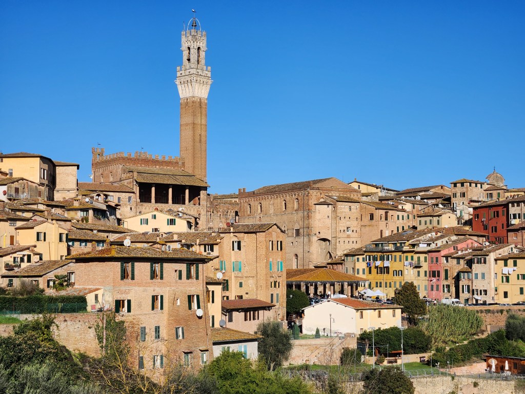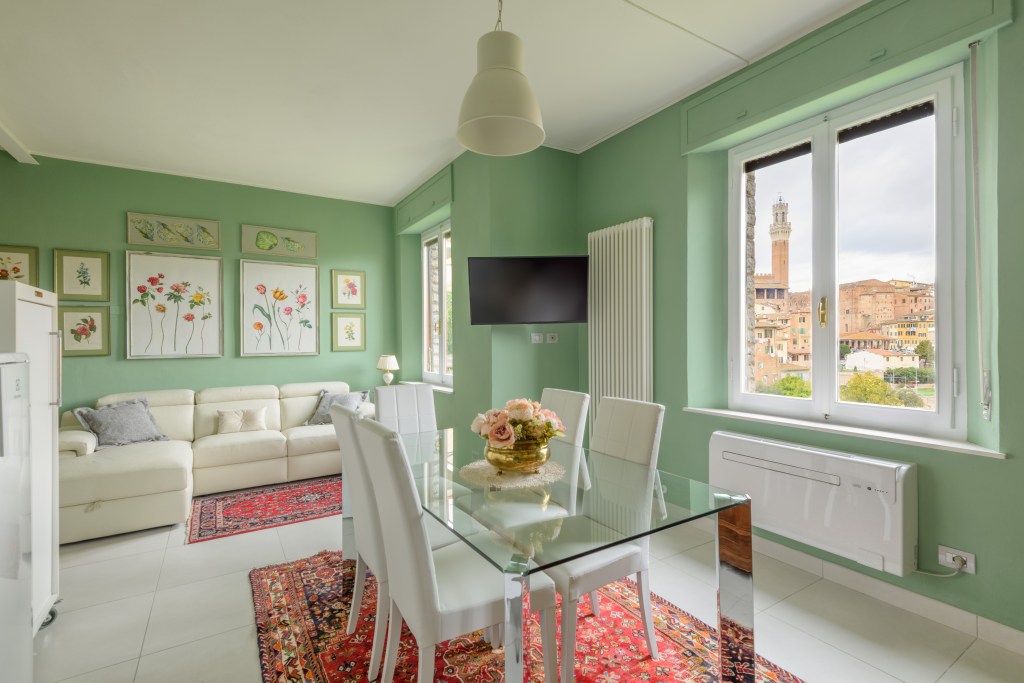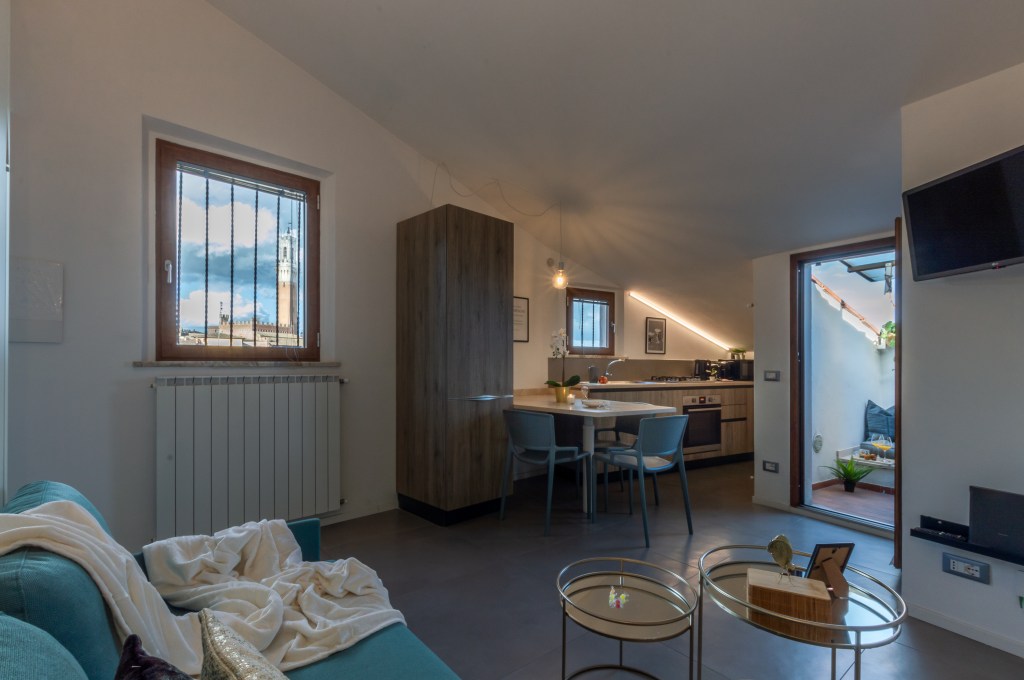 Ampia e modernissima struttura super panoramica con 3 camere e 3 bagni, luminosissima e dotata di aria condizionata. Parcheggio gratuito incluso, a due passi da Piazza del Campo.