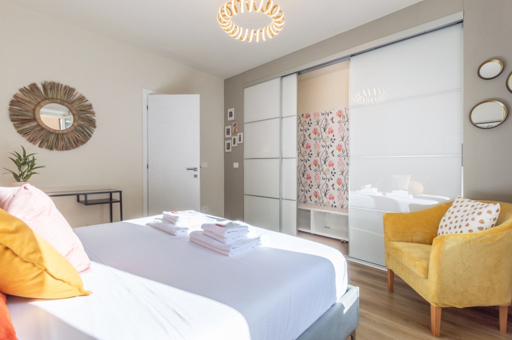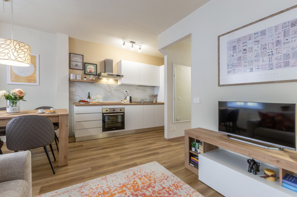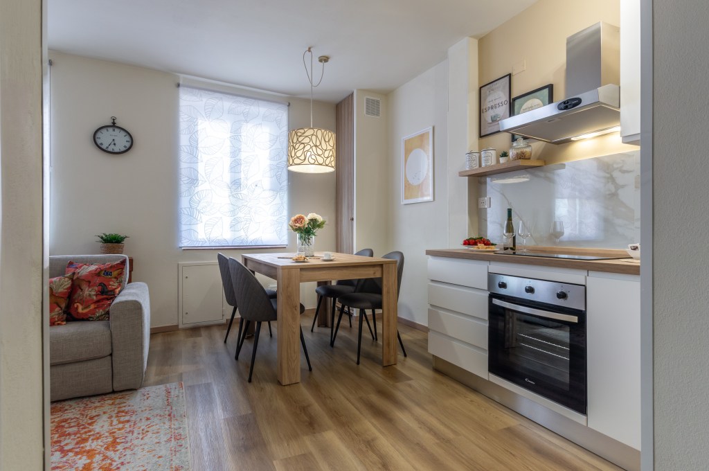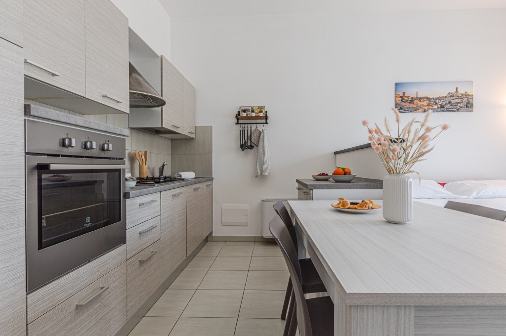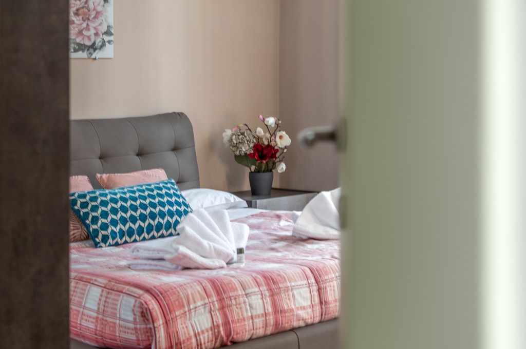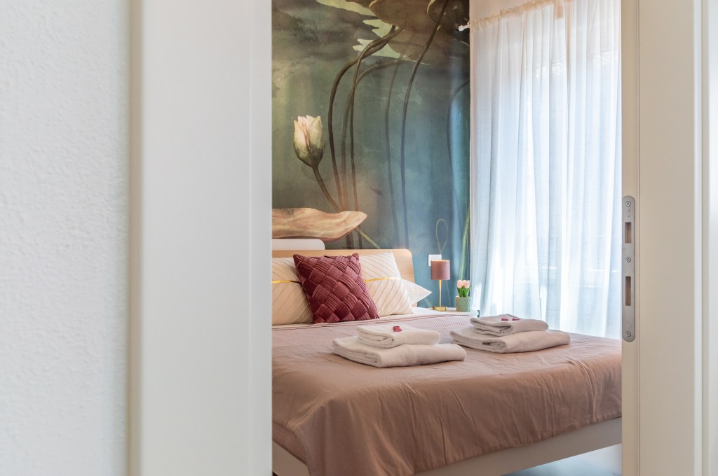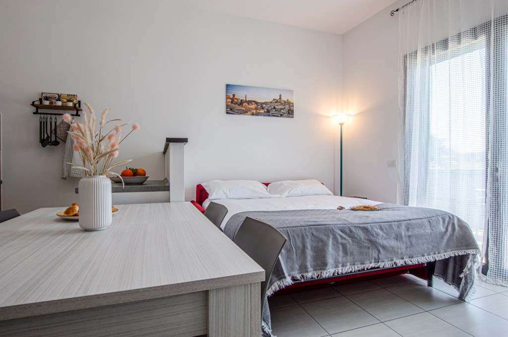 Luminosa e moderna, situata vicino a parcheggi anche gratuiti e dotata di aria condizionata, perfetta per un soggiorno comodo e pratico.