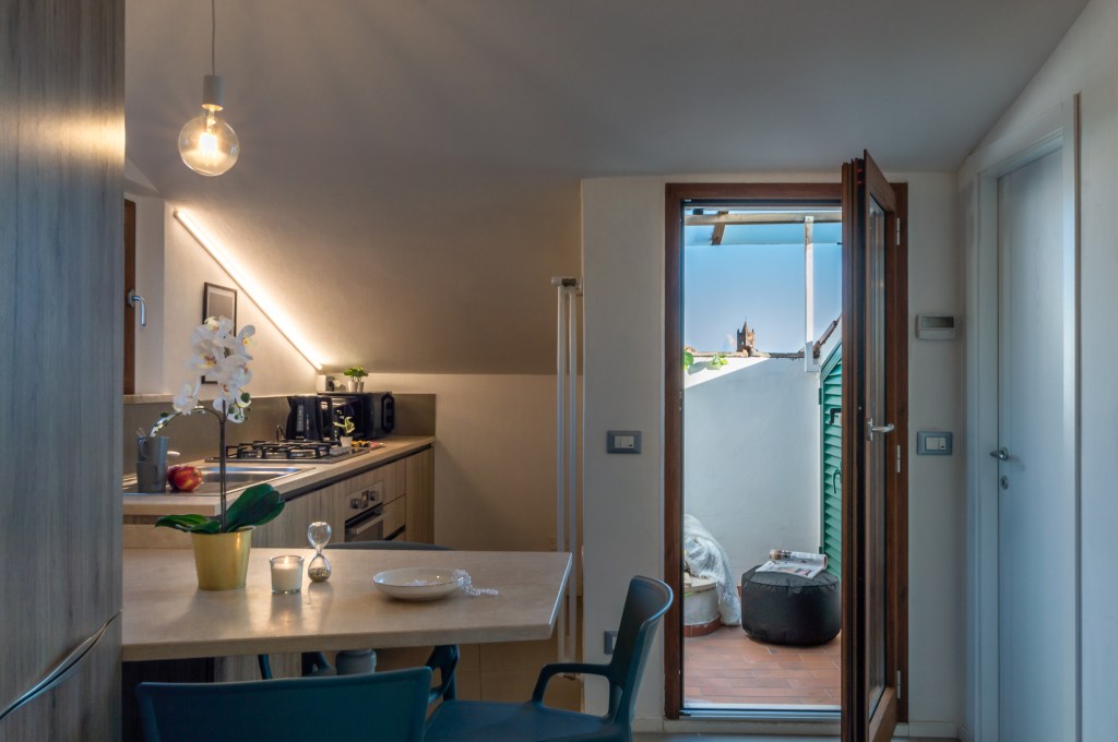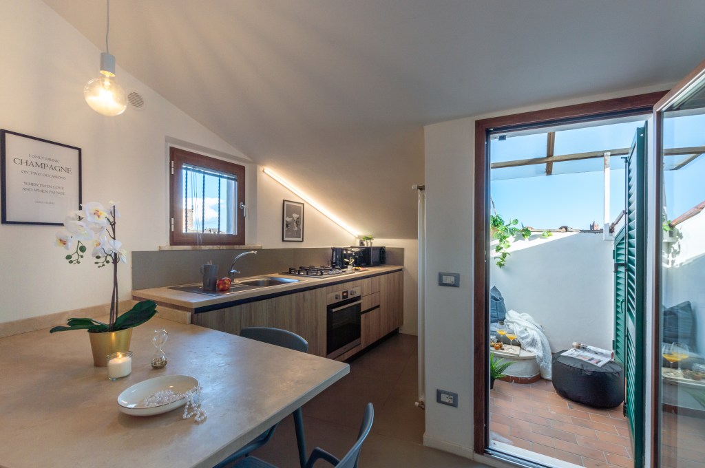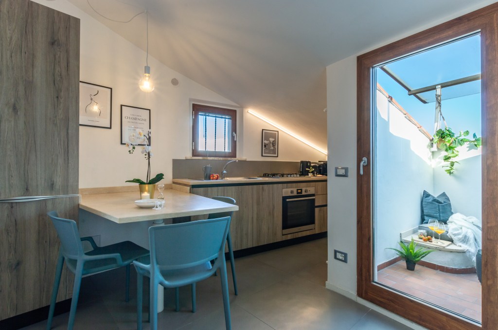 Luminosissimo piccolo attico moderno nel cuore della città, con terrazzo panoramico e vista mozzafiato. Dotato di aria condizionata e comodo parcheggio, ideale per vivere il centro con ogni comfort.