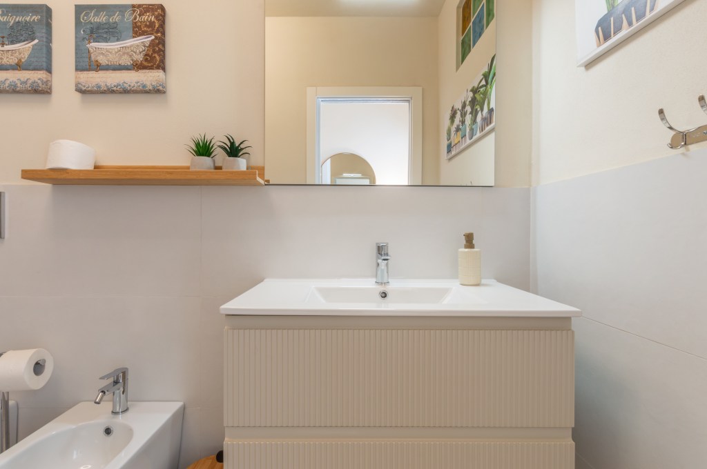 Ampia e luminosa, con parcheggio privato, due bagni e aria condizionata, situata in posizione comoda e vicina al centro.